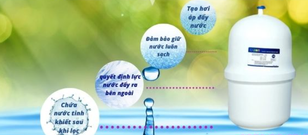 Bình áp đóng vai trò là nơi lưu trữ nước sạch sau khi lọc, đảm bảo luôn có nước sạch sẵn sàng để sử dụng, đặc biệt hữu ích trong những lúc nhu cầu cao như nấu ăn, pha trà, rửa rau khi máy chưa kịp lọc nước mới.