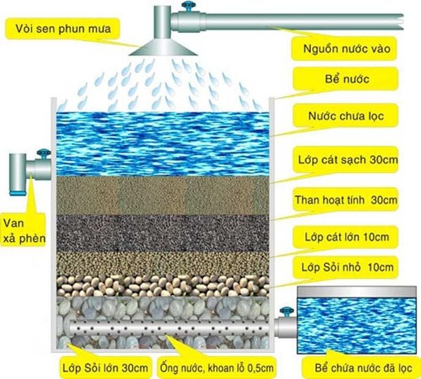 Lọc nước bằng cát, sỏi và than hoạt tính