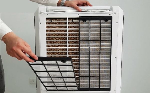 - Không khí nóng quanh quạt được hút theo nhiều hướng, đi qua tấm lọc bụi và tiến vào tấm làm mát.