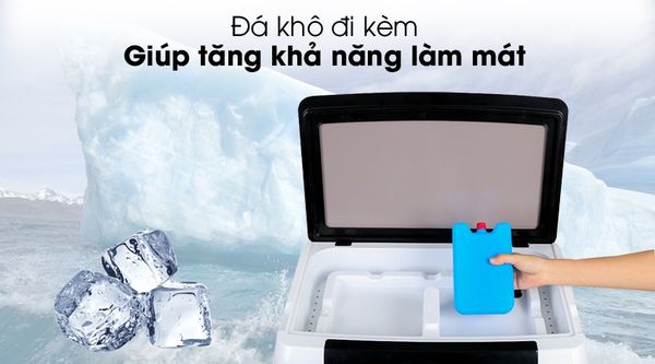 Có thể dùng đá lạnh, túi đá khô, hoặc gel đá khô trong bình chứa, giúp làm mát sâu, tạo cảm giác thoải mái trong mùa hè.