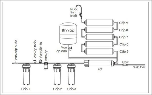 Tạo áp: Bơm tăng áp đẩy nước qua màng RO.