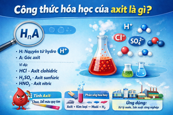 Công thức hóa học của axit là chìa khóa giúp hiểu rõ bản chất, tính chất và ứng dụng của axit trong hóa học cũng như đời sống. Từ những axit quen thuộc trong sách giáo khoa cho đến các axit xuất hiện trong nước sinh hoạt hay sản xuất công nghiệp, tất cả đều tuân theo những quy luật chung được thể hiện qua công thức hóa học.
