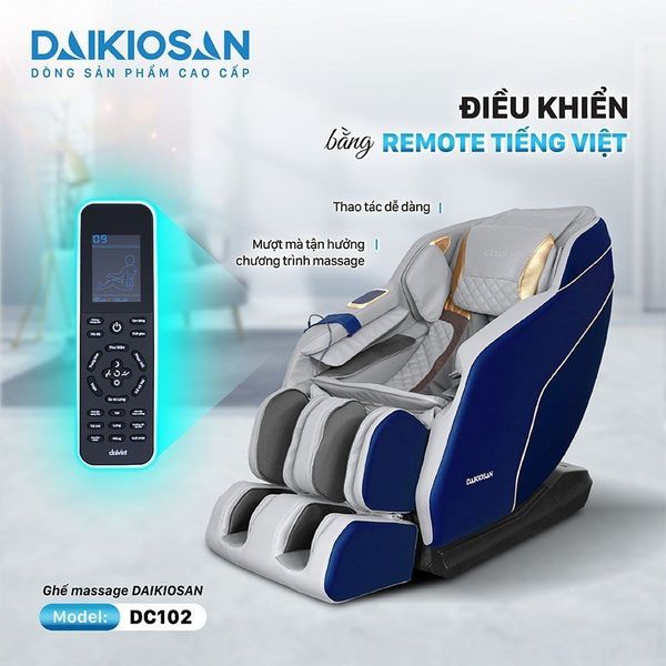 Ghế DC102 sử dụng remote điều khiển bằng tiếng Việt, rất phù hợp cho nhiều đối tượng người dùng, kể cả người lớn tuổi. Điều khiển giúp bạn dễ dàng chọn chương trình massage,