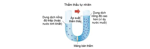 Thẩm thấu là hiện tượng tự nhiên xảy ra khi dung môi, thường là nước, di chuyển qua màng bán thấm từ dung dịch có nồng độ chất tan thấp sang dung dịch có nồng độ chất tan cao. Quá trình này diễn ra nhằm cân bằng nồng độ giữa hai bên màng và không cần bất kỳ tác động cơ học nào từ bên ngoài.