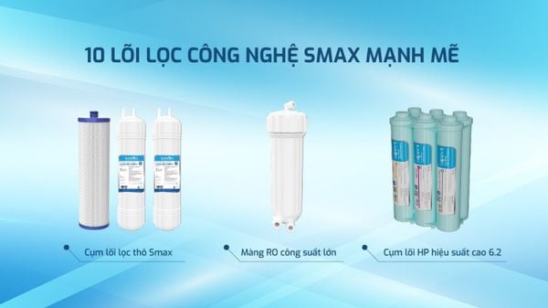 Khả năng xử lý mạnh mẽ này đến từ màng lọc RO Purifim công nghệ Smax, vừa lọc nhanh vừa tiết kiệm năng lượng, bảo đảm nguồn nước luôn tinh khiết.