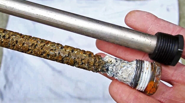 Thanh magie bảo vệ vỏ bình khỏi ăn mòn điện hóa, cần kiểm tra thường xuyên. Nếu thanh magie đã mòn hơn 60%, nên thay mới để tránh hư hại trong bình.